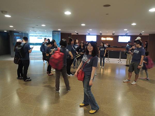 最後我們來到了大榴槤的大廳,從這裡可以直接看到大榴槤的屋頂。原來一開始Esplanade的外牆設計是全玻璃的,後來發現這實在不是一個很好的設計,因為新加坡的日照太強太熱了,白天的時候整個室內熱呼呼的,必須要開很強的冷氣不環保,也因此只好在外牆加裝隔熱的鋁片,因為大榴槤是橢圓形的,所以每一片鋁片的角度和大小都不同,以便可以隨著日出到日落太陽運行的方向做到最好的隔熱。設計的建築公司也存有每一片鋁片編號的大小檔案,以便鋁片壞掉的時候可以更換。但這還不是最神奇的,最神奇的是,這鋁片是要擦拭清洗的呀!這只能人工上去一片一片擦,鋁片會割傷人,又非常熱,因此工人上去都必須穿上很厚的衣服,每年擦兩次,擦一次要三個月。