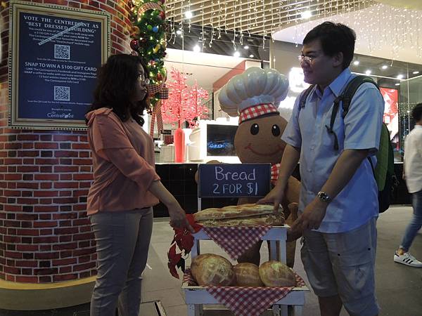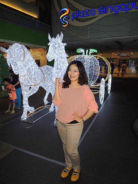 烏節路是新加坡最大的購物精品街,地位相當於新加坡的香榭麗舍大道,抵達的時候整個大街上面掛滿了藍色白色相間的耶誕圖騰,有聖誕樹和麋鹿。兩旁的商家和百貨也都各出奇招,擺了很多裝置藝術來裝飾這樣的節慶,有熊在賣麵包,也有南瓜馬車讓人拍照,更多的是簡單的燈飾,讓人看了目不暇給。