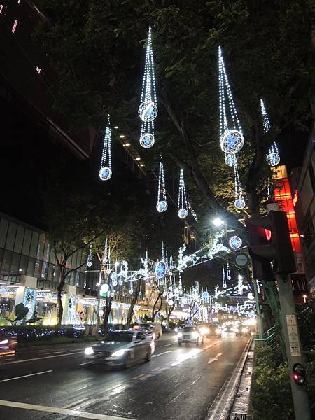我們大概走了一個地鐵站的距離,一直到覺得前面沒有什麼太特別的東西了,大約一個小時的時間,此時商家都已經拉下鐵門,但是還是燈飾還是維持著閃耀,把整個新加坡的耶誕夜照得七彩繽紛。我們跳上路邊的公車,幾乎每一輛公車都是往飯店的方向開,只花了不到10分鐘我們就回到了飯店,還來得及參加在團長房間舉行的慶功趴。