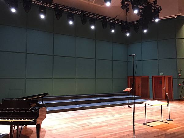 今天的門票很好玩,是沒有座位的,就是俗稱的先來先贏,慢來賽林涼。我入場的時候就直接跟指揮入場的工作人員說「Can I sit there? My wife is on the stage」。後來其實音樂廳的觀眾並沒有坐滿,一直到演出結束兩個邊邊都還有一些空位。今天的演出是在大榴槤的Recital Studio,我個人管它叫直腸廳。雖然不是Main Hall,但是已經夠令人興奮和驕傲的了。