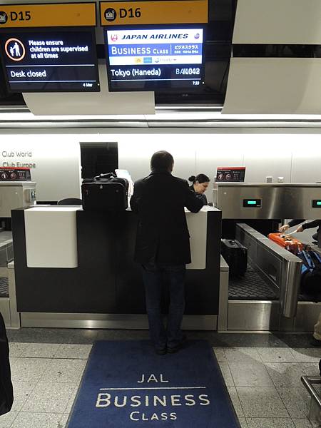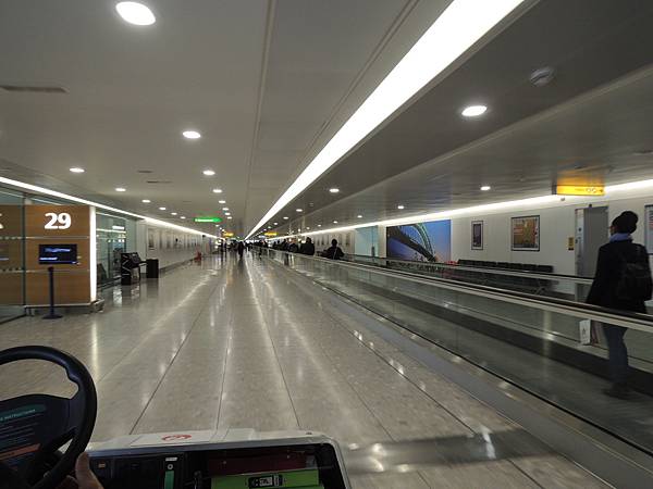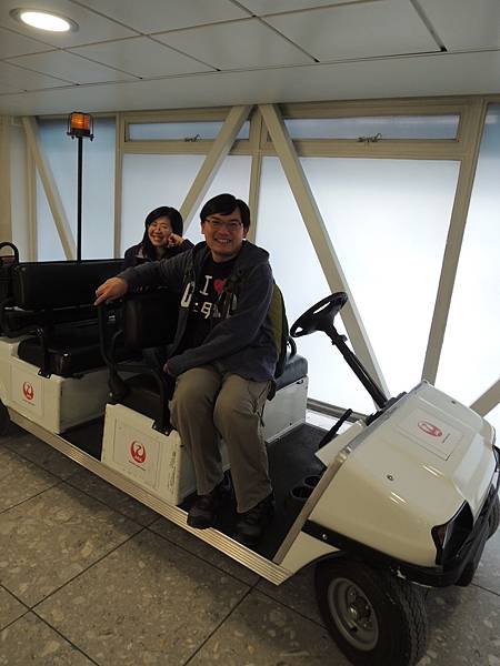 對於貴賓室的東西幾乎沒什麼食慾,發呆了一下子快轉到登機。知道希斯洛機場很大,我們空了多一點的時間前往登機門,結果路上看見有人拿著JAL的牌子開著高爾夫球車在吆喝。這不是商務艙專用哦! 只要是要去搭JAL的人都可以搭。當然如果你知道你的登機門在JAL隔壁,偷搭他應該也是不會怎麼樣啦哈哈...