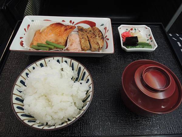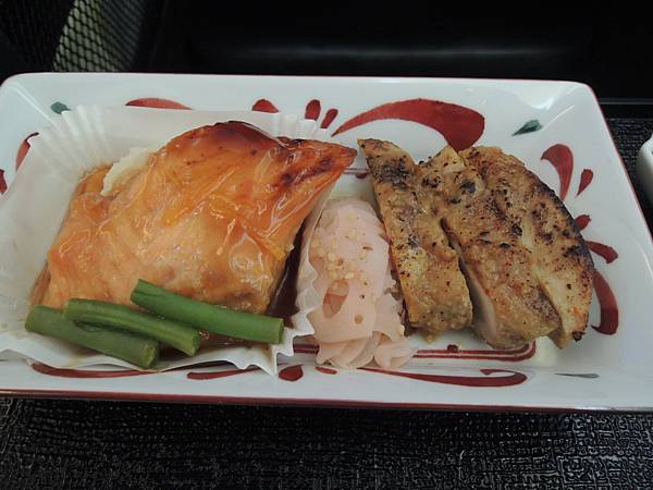 本來以為六宮格完就沒了,結果空服員請我把筷子留著,還有這個烤魚跟烤雞,配上已經兩個禮拜沒有吃到台灣的白米飯,OMG太犯規了!
