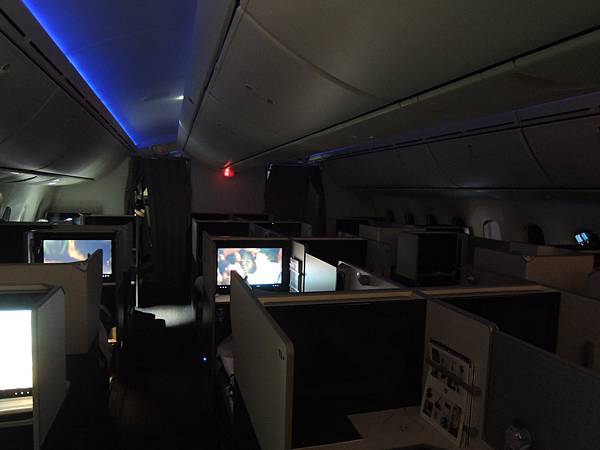 只睡了三個小時就醒來了。拍拍機艙...因為是白天起飛的班機,許多人都沒有睡覺在看電影...