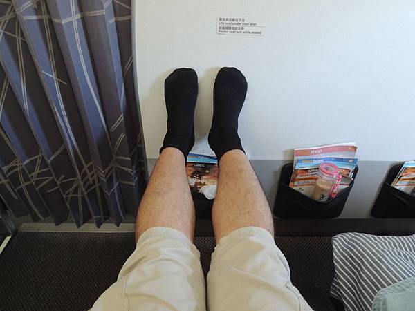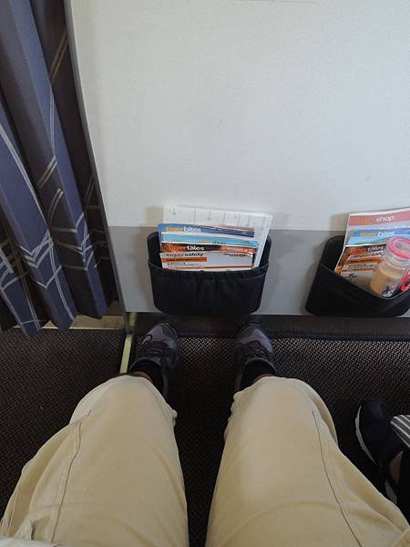 因為弟弟身材壯碩,我上次搭虎航被分配在最後一排椅子不能後仰痛苦萬分,因此決定加大位。第一排的座位比大多傳統航空的椅距都舒服很多。