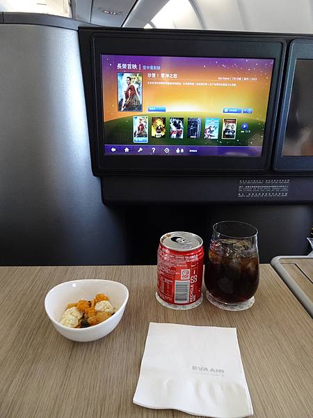 飛平之後先送上米果和飲料。我隔壁的乘客睡著了