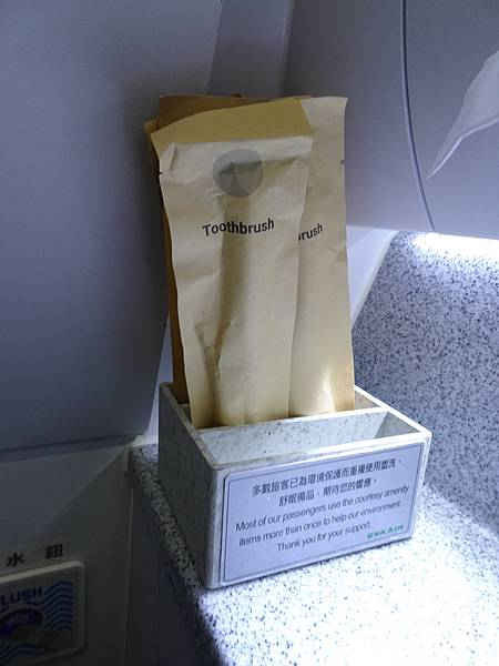 這時已經把牙刷擺到廁所的檯子上,起飛前我去上廁所還沒看到這個