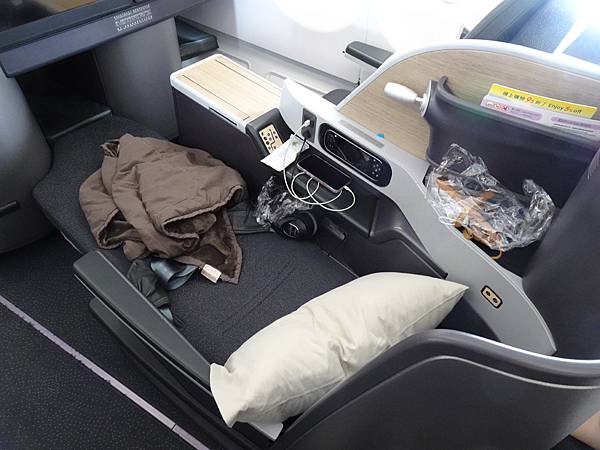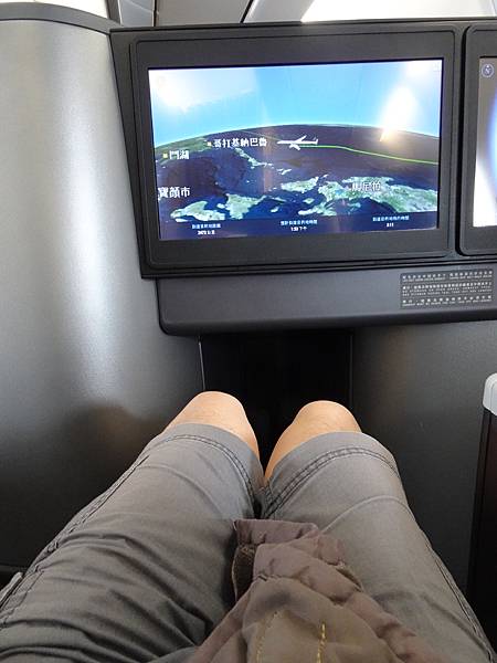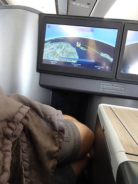 今天登機門使用3號登機門,沒有搭配空橋,地勤查詢我資料的關係,我錯過了第一班接駁車,只能和經濟艙旅客一同前往停機坪。上飛機發現我隔壁有坐人,我問空服員今天是否有其他空位,空服員說只剩第一排。第一排好像也沒有不好,但我也不知道在想什麼,就還是坐回我原來的位子。反而是旅程一半的時候,當我準備打平椅子睡覺,隔壁靠窗的旅客自己要求換位子了。